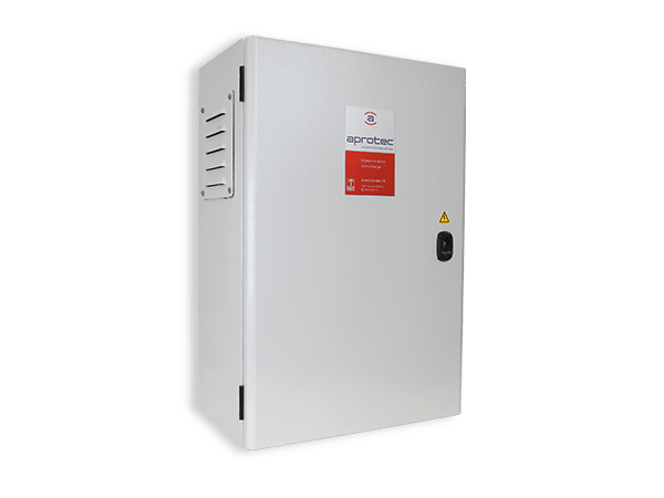 Armoire d’énergie permettant, en cas de coupure réseau, d’alimenter de 1 à 24 circuits d’éclairage de secours avec une tension de 230 VAC